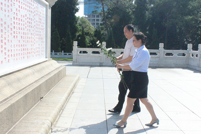在革命烈士纪念碑前默哀