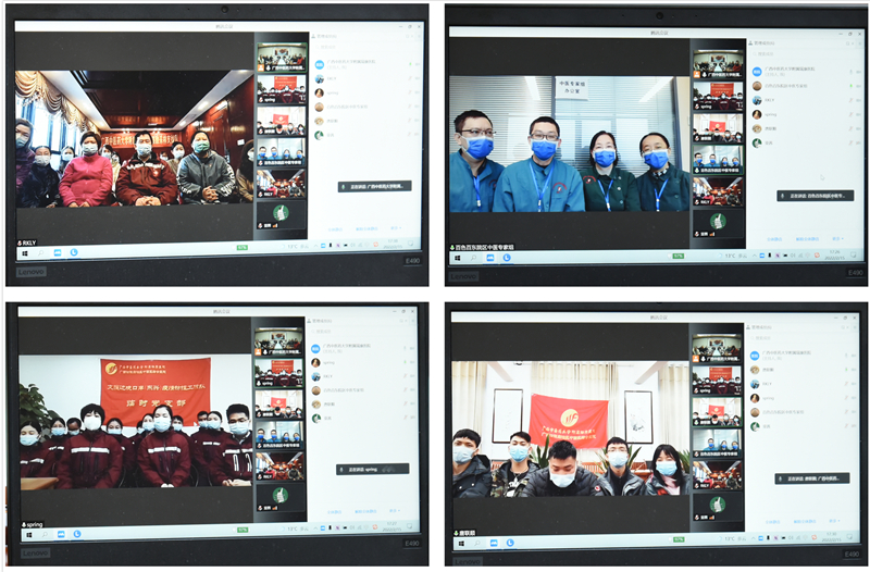 党委书记高宏君首先祝大家元宵节快乐,他表示,当前我院还有200多名队员坚守在抗疫一线,你们在开展工作中遇到重重困难,但仍出色地完成了上级党委和政府交给的任务,对此,学校党委和医院党委对你们的出色表现表示肯定和感谢,感谢你们辛勤付出,感谢你们为广西医疗卫生事业作出了贡献,感谢你们守护了我们一方的平安。每逢佳节倍思亲,希望大家保护好自己,平安健康顺利回家。