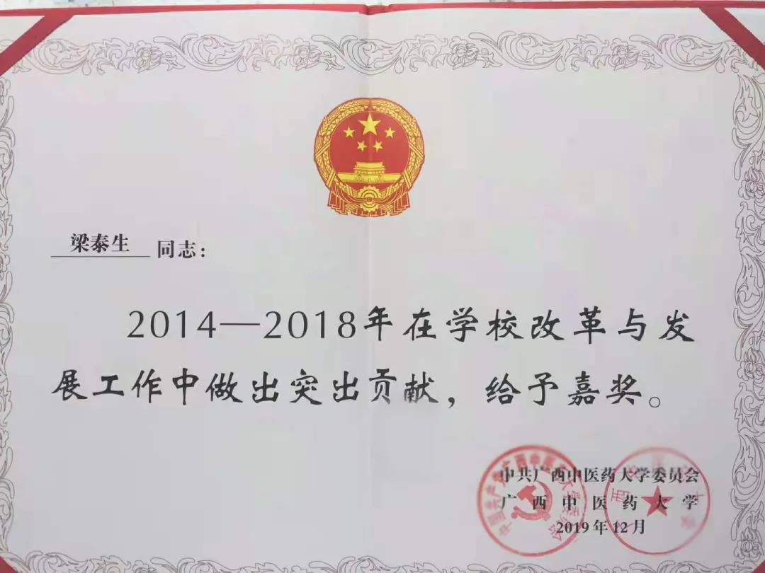梁泰生,中共党员,教授、主任医师。从医23年,党龄20年,先后获得2014年国家卫生部、科技部“杰出青年医师奖”;广西中医药大学 “优秀卫生工作者”4次;广西中医药大学 “2014-2018年学校改革与发展突出贡献奖”;广西中医药大学 “优秀共产党员”、“优秀党务工作者”多次获得者;广西中医药大学附属瑞康医院“优秀科主任”7次;广西中医药大学附属瑞康医院“优秀医生”1次;广西中医药大学附属瑞康医院“十佳医生”1次;……