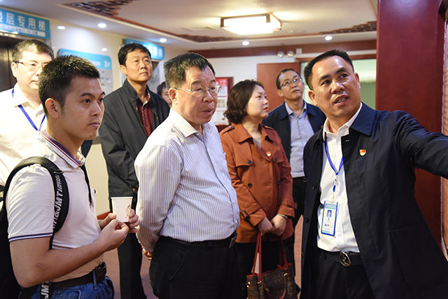 11月14日下午,自治区党委“不忘初心、牢记使命”主题教育领导小组第七巡回指导组组长、桂林电子科技大学原党委书记周怀营,广西大学纪委副书记罗国斌,自治区发展改革委机关党委四级主任科员陈桥,自治区退役军人培训中心党办主任陈敏一行4人在广西中医药大学党委书记尤剑鹏,党委常委、组织部部长唐振宇,组织部副部长吴光的陪同下莅临我院调研指导“不忘初心、牢记使命”主题教育工作。医院党委书记高宏君,院长唐友明,副院长庞刚、韦思尊、陈锋、宋策陪同调研,医院党委委员、主题教育领导小组成员代表、各党总支书记参加座谈。
