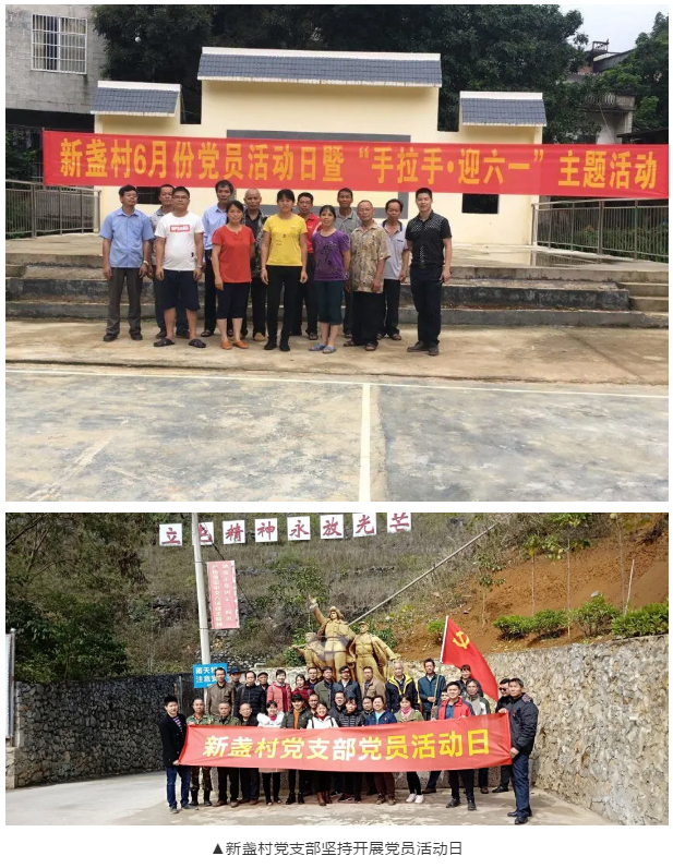 李金荣同志所在的新盏村党支部有党员39名,下设三个党小组。为了发挥党员先锋模范作用,李金荣同志提出让本村50岁以下的党员,通过结对帮扶贫困户一对一,分片分党小组的形式,责任到人到户到党小组,开展争先创优的评比活动。同时,他以身作则,真抓实干,通过每月主题党日活动,组织党员到困难群体家中开展集体帮扶,切实解决群众所需;定期给全村党员上党课,开展感恩教育,统一党员思想,不断调动党员的积极性,得到了群众的认可和信任。