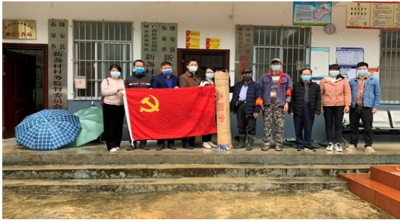 欧阳国林积极承担各项院外医疗任务,如:巡回医疗、一对一扶贫、医疗协作、院外会诊、抢救、到基层或外单位举办讲座、培训等。在疫情期间,我院派驻隆安县布泉乡新盏村驻村书记李金荣同志在接到镇党委、政府的防疫工作部署后,在全村设立9个体温检查点,3月份南方山区气候变化多端,山区露天疫情防控体温监测点没有防雨遮阳的设施。由于双方是结对共建支部,驻村书记李金荣同志立即联系欧阳国林书记,了解情况后,欧阳国林书记立即线上召开支委会,经支委会讨论后决定在支部内进行募捐购买伞,第二天就将“爱心伞”送到山区的体温检测点。