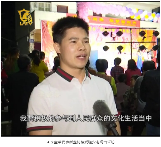 为了更好地开展好脱贫攻坚工作,服务群众,提高新盏村文化水平,丰富村民精神内涵,实施“扶贫扶志扶智”计划,李金荣组织成立了新盏村文艺队。2019年,在他的带领下,新盏村文艺队多次参加文艺汇演和歌唱比赛,收获“最佳组织奖”、“集体组织奖”、 团队“三等奖”等奖项,而他也荣获个人“一等奖”、个人“三等奖”等奖项。通过组织参加这些活动,李金荣同志所在的党支部凝聚力增强了,荣誉感增强了,群众爱戴了,整个党支部在群众中发挥了显著的作用,党支部也获评为“五星级”党支部。李金荣同志以身作则,深入群众,通过抓党建促脱贫,截止2020年底新盏村累计脱贫143户,575人,贫困发生率下降到0,实现整村全员脱贫摘帽。