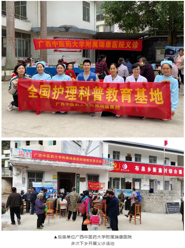 健康扶贫是脱贫攻坚战中的重要一环,能及时为建档立卡贫困户提供基本医疗保障,李金荣依托后盾单位广西中医药大学附属瑞康医院,把住群众健康之脉,开出精准扶贫之方,在医院党委的精心指导下深入开展健康扶贫。在2018年至2020年帮扶期间,他同后盾单位瑞康医院组织开展了6次大型健康扶贫义诊活动,免费诊疗600多人次,免费赠药350余份。让广大基层群众在家门口便能享受到三级医院的医疗服务,有效缓解了贫困户看病难、看病贵等系列问题,得到村里群众一致好评。