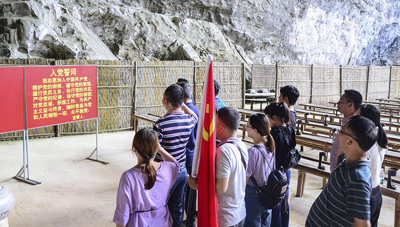 活动中,党员干部们先后来到韦拔群纪念馆、东兰烈士陵园、魁星楼、韦拔群故居、广西农民运动讲习所旧址(列宁岩)等红色教育基地参观。在东兰烈士陵园,党员们瞻仰了革命烈士纪念塔和韦拔群烈士陵墓,并敬献花圈,表达对革命先辈的崇高敬意和无限追思;在列宁岩,党员们面对鲜红的党旗,重温入党誓词,再次回望入党初心,坚定共产主义信仰;在韦拔群纪念馆、魁星楼、韦拔群故居,党员干部重温了拔群精神,了解了战士们的战斗故事和感人事迹。一件件历史实物、一幅幅珍贵图片,生动再现了革命先烈英勇奋斗的光辉岁月,为广大党员上了一堂生动的党史课,特别是农民起义的英勇事迹,使大家深切地感受到革命先烈们为了人民幸福、民族解放和国家富强,忠贞不屈、舍生忘死的牺牲精神,增强了党员干部担当尽责的使命意识。