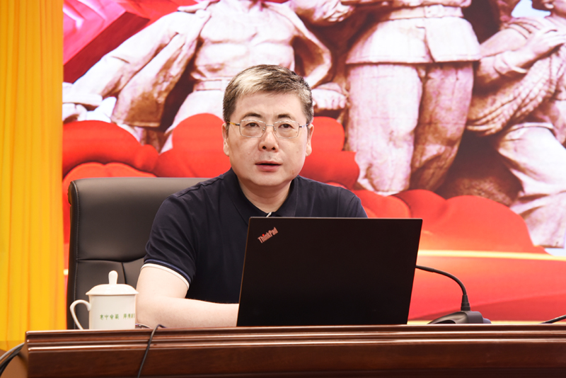 高宏君结合党史学习教育以及个人从军经历,首先从百年未有之大变局、全球疫情、全球经济、世界格局等方面剖析了当今世界所面临的时代潮流和发展大势,指出了错综复杂国际环境带来的新矛盾新挑战,强调在中国共产党领导下的中华民族伟大复兴绝不是轻轻松松、敲锣打鼓就能实现的,我们面临着难得机遇,也面临着严峻挑战,必须不忘初心、牢记使命,一鼓作气、继续奋斗。
