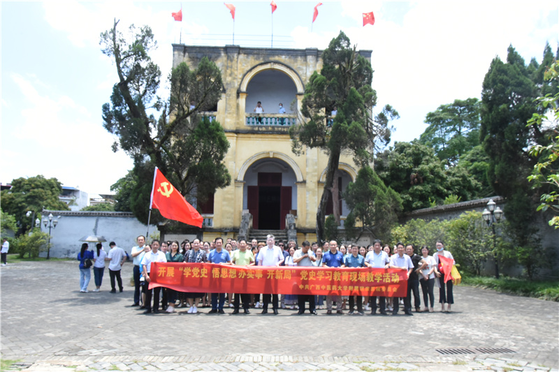 6月18日下午,我院党史学习教育现场教学学员一行来到龙州起义纪念馆,在纪念馆广场的邓小平雕像前举行“感恩党 跟党走”党史学习教育培训班开班仪式。