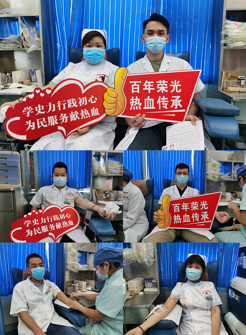 深学党史践初心 无偿献血我先行。今年是中国共产党成立100周年。为庆祝建党百年,深入贯彻落实党史学习教育“我为群众办实事”的活动要求,弘扬医务人员“大爱无疆”的职业精神,7月27日上午,我院积极组织干部职工在A座大楼前开展无偿献血活动,以实际行动奉献爱心,为临床用血需求提供支持和保障。