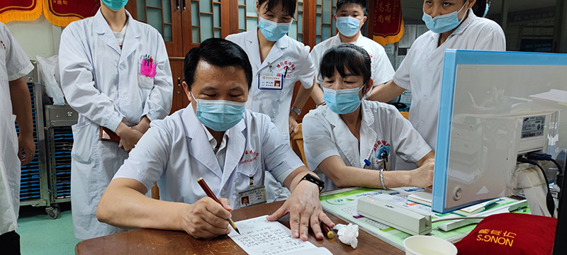 正值全国上下庆祝中国共产党成立100周年,深入开展党史学习教育之际,为了进一步传播名中医学术思想和技术专长,提升基层中医药服务能力,满足人民群众对中医药服务的需求,7月29-30日,广西中医药大学党委副书记、第六批全国老中医药专家学术经验继承工作指导老师、广西名中医庞宇舟教授率领名中医传承工作室团队一行18人赴博白县中医医院开展“感党恩,跟党走,我为群众办实事”健康服务活动,对基层单位进行教学查房、巡诊带教、学术讲座、健康义诊等。