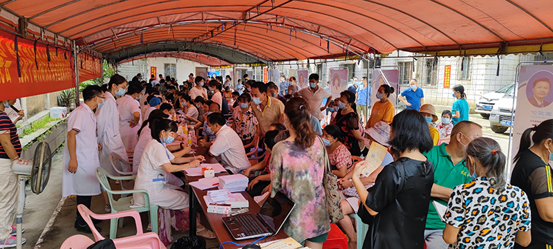 为切实满足基层人民群众的健康需求,7月30日上午,庞宇舟教授团队于博白县中医院开展大型义诊活动。此次义诊由庞宇舟教授带队,杨美春教授、曾振东主任医师、李仁锋主任医师、邱少彬副主任医师、梁明坤副主任医师、覃辉副主任医师、黄安副教授、张青槐副教授、邢沙沙主治医师、叶斌主治医师、石罗玉医师等参加,分设内科疑难杂病、妇科、脑病、肿瘤、风湿科、骨科、壮医科、皮肤科、男科疾病以及亚健康调理等科目,全体专家在简易的遮阳棚下冒着酷暑,热情为前来就诊的群众或把脉处方、或针灸推拿治疗,从上午8时30分至中午12时30分全程不休息为患者提供服务。据悉,当天共诊治患者300余人,发放宣传资料200余份。