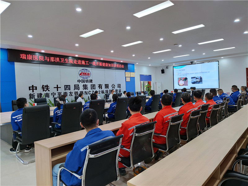 义诊活动现场,中医专家为中铁十四局的员工进行了诊治,对前来问诊员工提出的问题逐一做出了解答。骨科陈宜副主任医师在义诊过程中发现,由于工程人员或办公人员长期负重工作、长时间保持同一姿势等因素,造成一些常见疾病如脊柱侧弯、腰肌劳损等,针对这些问题,专家指出可以通过不定时改变工作体位、工作时适当减轻负重以及一些日常的放松肌肉等方式来预防职业病。此外,心血管内科何金龙副主任医师还对中铁十四局职工带来的体检资料进行了分析,指出血压偏高的人群应当清淡饮食,养成低盐少油的良好烹饪饮食习惯。普外科牙韩威副主任医师还发现,由于长时间站立作业,许多职工存在患上下肢静脉曲张的风险,并针对这一问题向大家提出了预防措施及日常保健知识。泌尿外科卢尚光副主任医师对职工常见的尿结石、前列腺炎等疾病提出了预防和保健措施。