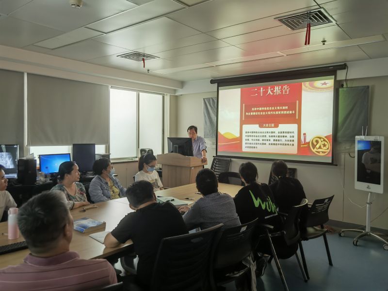 学理论之思,践初心之行。2022年10月16日,党的二十大隆重召开,一系列的蓝图目标、战略布局、工作部署激动人心、催人奋进。为推动党的二十大精神走深走实、入脑入心,11月1日,医技药学第二党支部在医学影像中心医生办公室开展了“学习党的二十大报告”主题党日活动,支部全体党员参加。