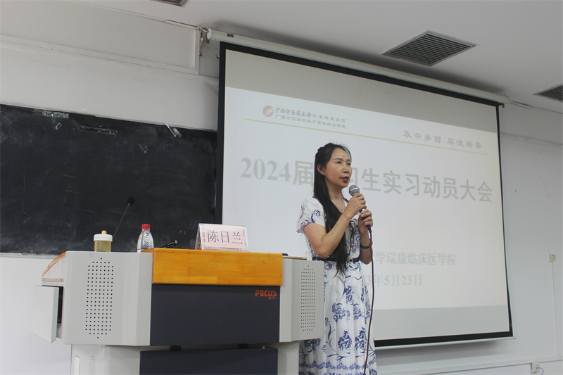 5月23日下午,我院在广西中医药大学明秀校区西梯二教室召开瑞康临床医学院2024届毕业生实习前动员大会。学校招就处副处长杨思源,教务处实践科科长程若敏,我院党委副书记、副院长陈日兰,学生科、团委全体老师以及335位学生参加大会,大会由学生科科长王瑜主持。
