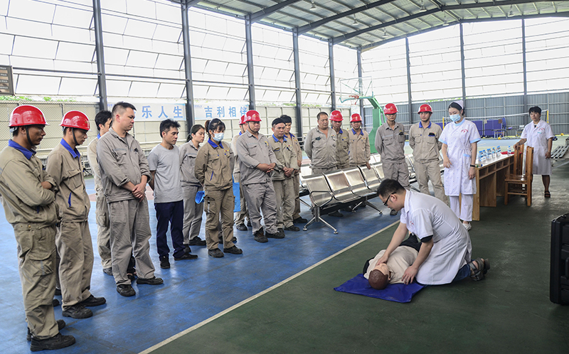 在知识讲座中,赵醒艳以《职业病常见危害因素防治方法》为题,给企业职工们普及了常见职业病防治的知识和技能;急诊科医生吴杰以实践操作的方式带来“心肺复苏急救知识培训”,提升了职工们应对安全突发事故的自救知识和能力。