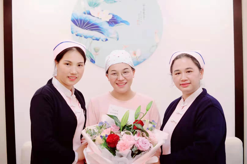 近日,我院产科副主任黄翎、护士长刘青艳、副护士长黎凤民代表产科全体医护人员来到产妇闫玉梅的病房,向这位抗击新冠肺炎的抗疫英雄献花,表达对抗疫英雄的敬意。