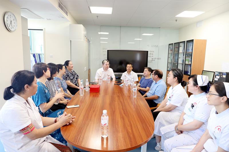 7月27日下午,我院在儿科医生办公室为即将光荣退休的儿科技术主任梁文旺教授举行退休座谈会。医院党委书记高宏君、副院长韦思尊出席活动,党委办公室、医务部、人力资源部、工会、离退休管理科等部门负责人,以及与梁文旺教授共事多年的科室人员参加座谈会。