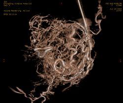 3.妇科出血应用介入栓塞技术处理子宫切除术后阴道残端出血以及复杂的盆腔外伤出血,方法简便且效果显著。对部分难治性功能失调性子宫出血患者行子宫动脉DSA造影可发现出血的原因,如内膜基底层与浅肌层之间的微小血管瘤破裂,而血管瘤的栓塞治疗是介入技术的最佳适应证之一。