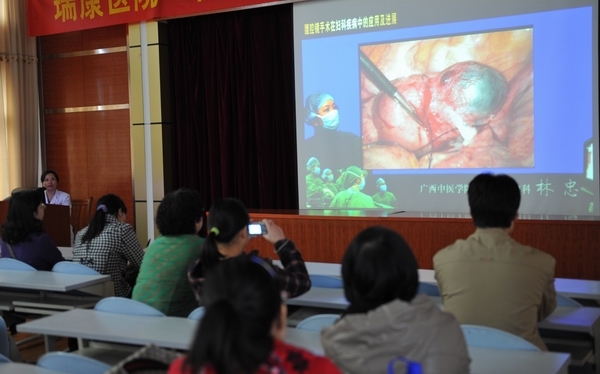 大会由妇科主任林忠教授亲自主持,广西中医学院附属瑞康医院桂雄斌副院长为开幕式致欢迎辞,张阳德教授在嘉宾致辞中高度评价了我院妇科微创手术发展从80年代末的仅有的宫腔镜检查到90年代末开始腹腔镜I级手术II级、III级到今天广泛开展腹腔镜的四级手术所取得的巨大成就,内镜技术处于国内先进水平,培养了一批又一批规范的妇科专业内镜手术医师,为提高我国的内镜技术水平作出了积极的贡献。大会评出了我基地2010年度四名优秀妇科腔镜进修医师,有来自福建省长门县妇幼保健院包芳芳院长、南丹县中医院妇产科主任黄玉梅主任、钟山县中医院妇产科主任赖兵主任等。张阳德教授等亲自为其颁奖。