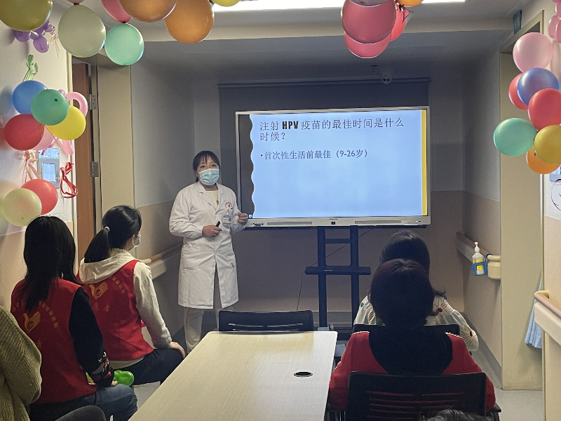 活动伊始,王东芳用通俗易懂的语言,以图文并茂的形式,给她大家介绍了子宫颈癌流行病学现状、HPV的分型、HPV的致病过程、疫苗的接种和宫颈癌筛查。运用鲜活的事例为患者讲解了维护女性健康、宫颈癌筛查和注射HPV疫苗的重要性。现场每一位都在认真聆听,现场气氛温馨融洽。