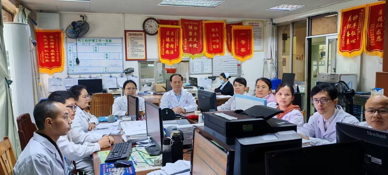为提升基层中医药服务能力,满足人民群众对中医药服务的需求,12月6日至8日,广西名中医、我院风湿免疫科主任庞学丰教授率领李玉玲副主任医师、潘冬梅主治医师等团队成员,再次赴博白县中医院开展2024年广西“名中医八桂行”系列活动。活动内容包含学术讲座、查房、疑难病例讨论、座谈交流、健康义诊等。