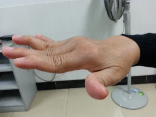 未经正确治疗的晚期类风湿关节炎患者的手指