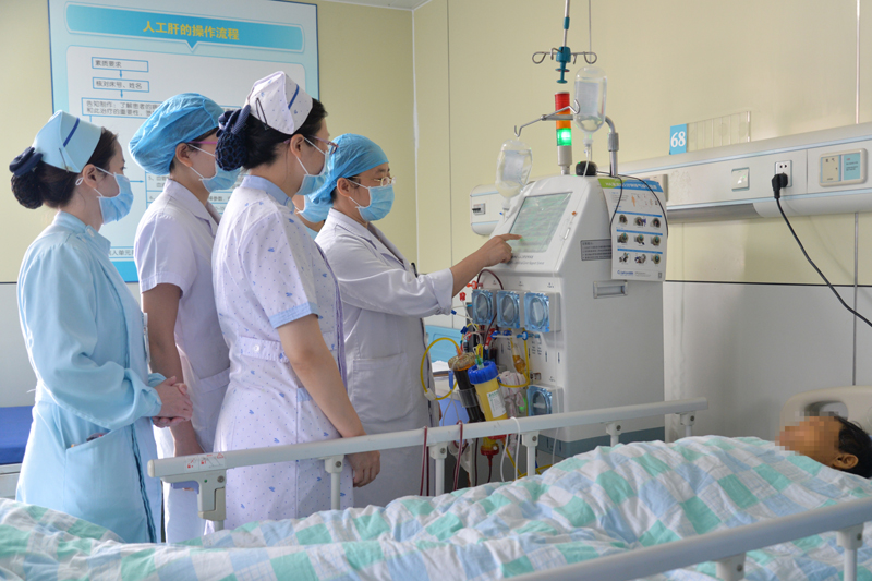 我科现拥有住院病房70张,开设肝病专科门诊2个,由临床经验丰富的教授、主任医师及副主任医师长期坐诊。本专科拥有国内先进的肝病检测设备,如高级人工肝系统、腹水超滤浓缩回输机、中频脉冲电子治疗仪、肝穿刺活检枪、FibroTouch检测系统等,开展各种常见及复杂疑难肝病的中西医结合诊治,如多种模式的人工肝术、腹水浓缩回输术、B超引导下肝组织穿刺术,肝囊肿穿刺抽液术等诊断治疗技术。本专科是南宁唯一一家自己开展人工肝治疗的科室,是广西中西医结合重症肝病及人工肝分会主任委员单位,有区域性人工肝治疗的突出优势,此外,在中西医结合治疗肝硬化腹水、病毒性肝炎,脂肪肝,以及对重症肝病诊治水平走在全区前列。