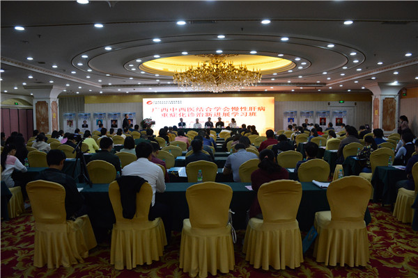 由广西中西医结合学会主办,广西中医药大学附属瑞康医院承办的广西中西医结合培训班(慢性肝病重症化诊治新进展)于10月20日在南宁市凤凰宾馆举办。我院副院长韦思尊,广西中西医结合学会秘书长李方,重庆医科大学第二附属医院凌宁教授、中山大学附属第三医院张扣兴教授、李刚教授以及区内著名肝病、感染病等专业专家学者到场参会。