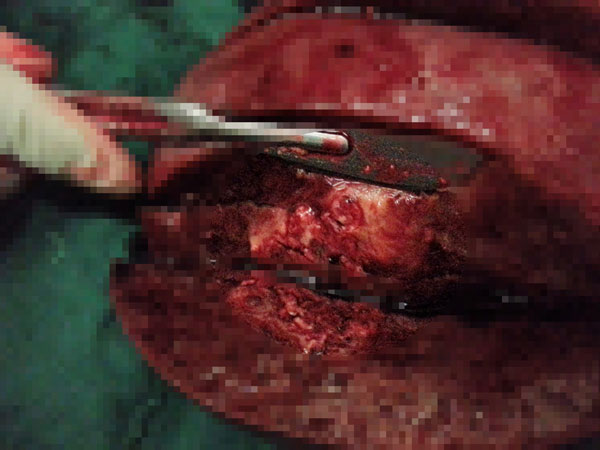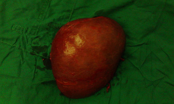 7月16日,韦杨年主任再次主刀,为黄先生施行右半肝切除术。手术非常顺利,术中无需阻断第一肝门,最大限度地保护了左肝残肝的功能。经过两次手术,成功切除右半肝,剖示肝脏肿瘤大小约8.0cm×5.0cm×5.0cm,肿瘤病理结果为:肝细胞肝癌。