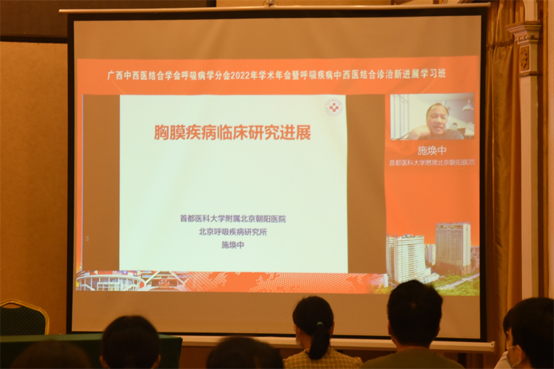为加强广西中西医结合呼吸专业的交流与合作,提高呼吸系统疾病防治水平,推动中医肺病专科质控及学科高质量发展,9月24日,由广西中西医结合学会、广西中医肺病医疗质量控制中心主办,我院承办的广西中西医结合呼吸病学分会学术年会暨呼吸疾病中西医结合诊治新进展学习班在南宁举行。自治区中医药管理局副局长潘霜、我院副院长韦思尊出席会议,广西中西医结合呼吸病学分会全体委员以及广西各级医院医师同仁参加会议。会议由韦思尊副院长主持。