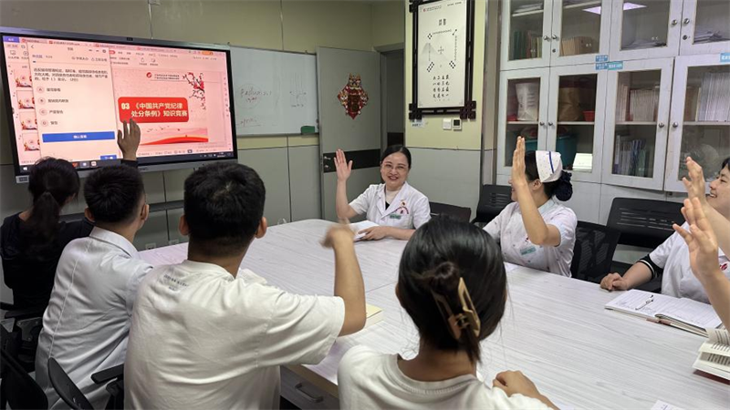 为庆祝中国共产党成立103周年,6月27日,在“七一”建党节来临之际,我院内科第九党支部开展迎“七一”建党节系列活动,内科第九党支部全体党员参加了本次活动。活动由党支部书记唐晓同志主持。