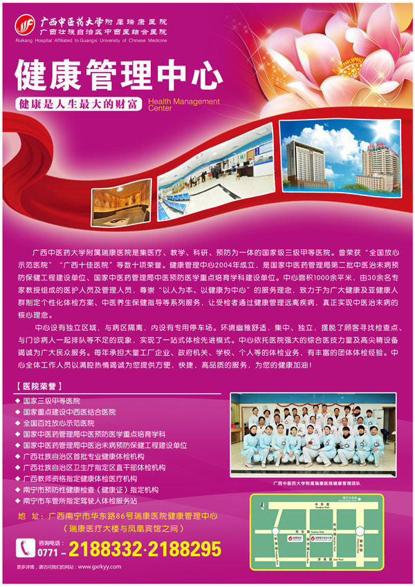 广西中医药大学附属瑞康医院(原中医二附院)始建于1951年,是国家公立三级甲等综合性中西医结合医院、全国卫生系统先进集体、全国百姓放心示范医院、 国家重点中西医结合医院、国家中医药管理局国际交流合作基地...