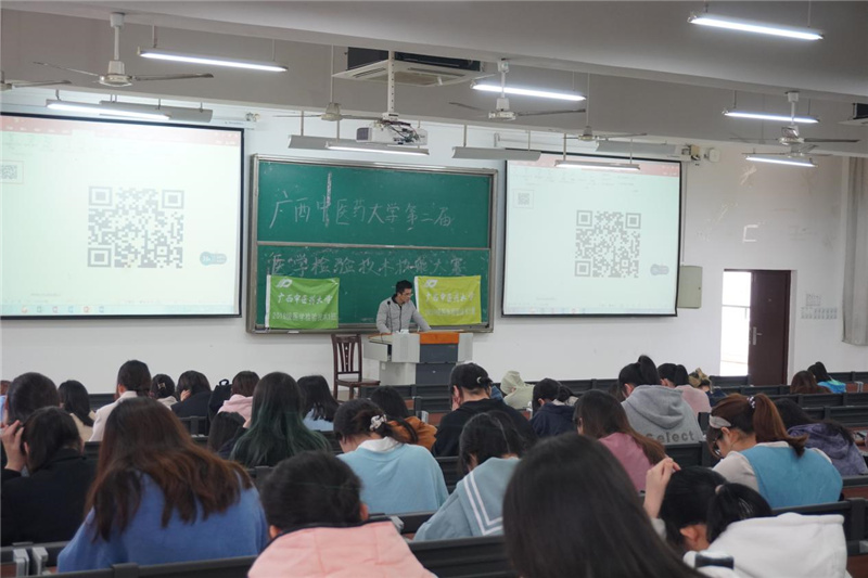 4月10日,广西中医药大学第二届医学检验技术知识技能大赛于仙葫校区顺利开幕。我院检验科主任刁志宏和辅导员郭言出席开幕式。
