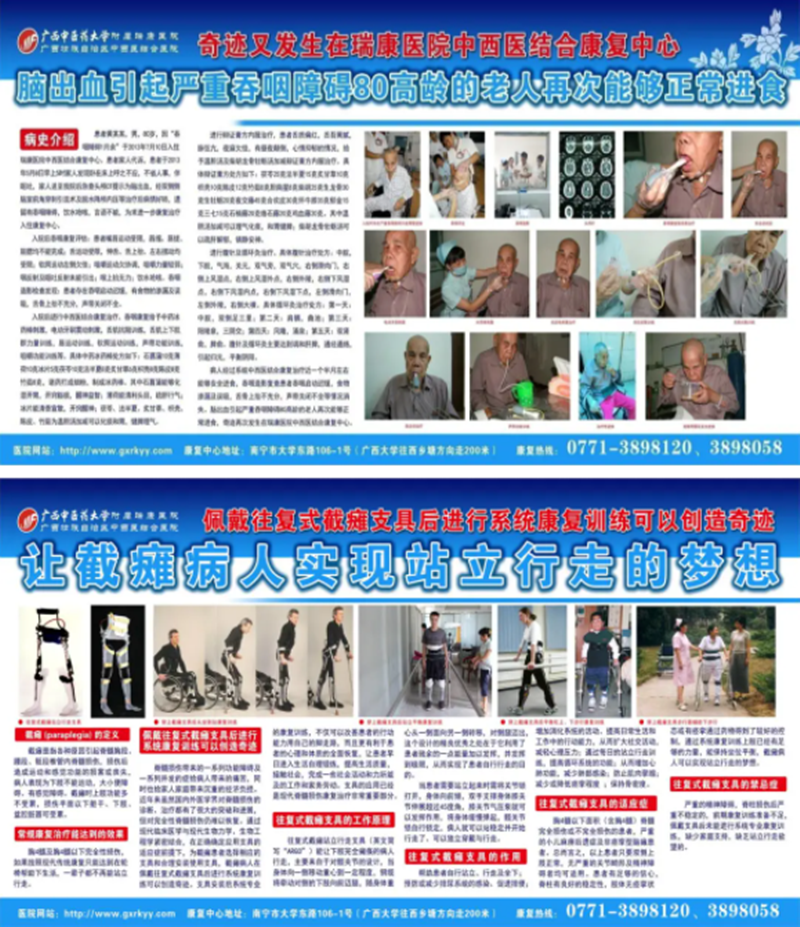 4.针对脊髓损伤导致的截瘫病人,佩戴往复式截瘫支具配合系统康复治疗实现站立行走突破。针对中枢神经系统损伤特别是脊髓损伤后尿潴留的患者开展膀胱功能训练、间歇性导尿技术,解决患者长期留置尿管的问题。