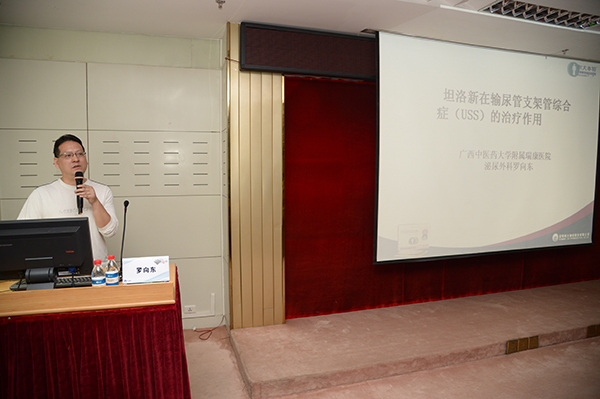 唐友明院长代表医院全体职工对区内外专家的到来表示欢迎和感谢,他指出,我院经过60多年的发展,已经成为广西中西医结合医疗的中心。医院广泛开展介入、微创外科手术,并与世界多个国家和地区在学术上建立长期的交流合作。我院泌尿外科是广西首家卫生部泌尿外科内镜培训基地,是广西中西结合泌尿外科专业委员会主任委员,人才队伍实力雄厚,设备先进。去年年手术量超过1000台,以泌尿系统结石手术为主,90%以上属于微创手术,其中三、四级的手术比例超过70%。近年来多次成功举办经皮肾镜培训班,内镜学习班,广西中西医结合泌尿外科年会等大型会议,得到了同行和与会人员的高度评价。作为国家重点中西医结合医院,我院特别注重发挥中医药的特色和优势,针对泌尿系统结石配合中药治疗,收到了满意的疗效,深受患者欢迎。