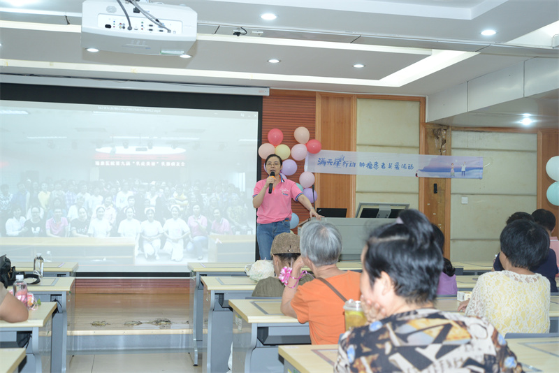 为让更多女性得到关爱与健康,增强女性自我保健意识,10月19日下午,我院乳腺病科联合社工部在药业宾馆十楼教室举办了第十二届“乳此美丽”乳腺病友会。本次活动由乳腺病科主任吕丽琼主持,护士长杨琳、社工部医务社工、志愿者以及部分病友80余人参加活动。