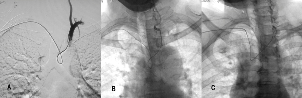 目前常规的经股动脉入路全脑血管造影存在一定的不足:1.一定的并发症(穿刺部位血肿、假性动脉瘤、动-静脉瘘等);2.术后需卧床数小时会导致患者进食、上厕所等不便,此外对于下肢静脉存在血栓的患者则会加重血栓形成;3.经股动脉入路行造影需对腹股沟区进行备皮,对于女性患者多为不便。
