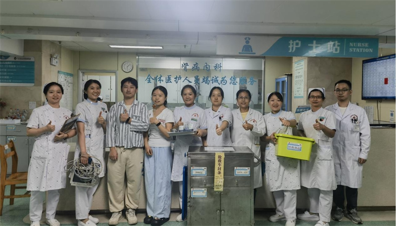 为响应国家“提升慢性病共病管理能力”要求,提高医护人员对急危重症的应急处置能力,进一步保障患者安全,近日,我院肾病内科在主任向少伟、护士长王艺的指挥与统筹下,积极组织开展了慢性肾衰竭患者合并急性心力衰竭高钾血症应急处置提升演练。