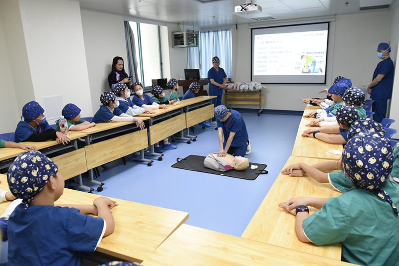 27日下午,为增进彼此了解,科普麻醉、手术医学常识及急救技能,从小培养孩子们对医学的兴趣,手术麻醉科邀请到南宁市桂雅路小学五年级(17)班的同学们进入手术室,开展了以“探秘麻醉”为主题的首届开放日活动。活动中,手术麻醉科的医护人员在示教室以问题为导向,通过急救知识介绍、现场心肺复苏演示、海姆立克法、模拟人实操练习三步骤,让同学们了解并初步掌握了急救技能。随后,医护人员还带领孩子们走进麻醉工作现场,科普麻醉知识的同时介绍了相关仪器设备。通过活动,孩子们收获了丰富的知识和技能,也对医护工作者有了更深的了解,感受到了对生命的敬畏,内心中也播种下了医疗科学的种子,留下了难以忘怀的记忆。