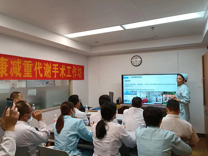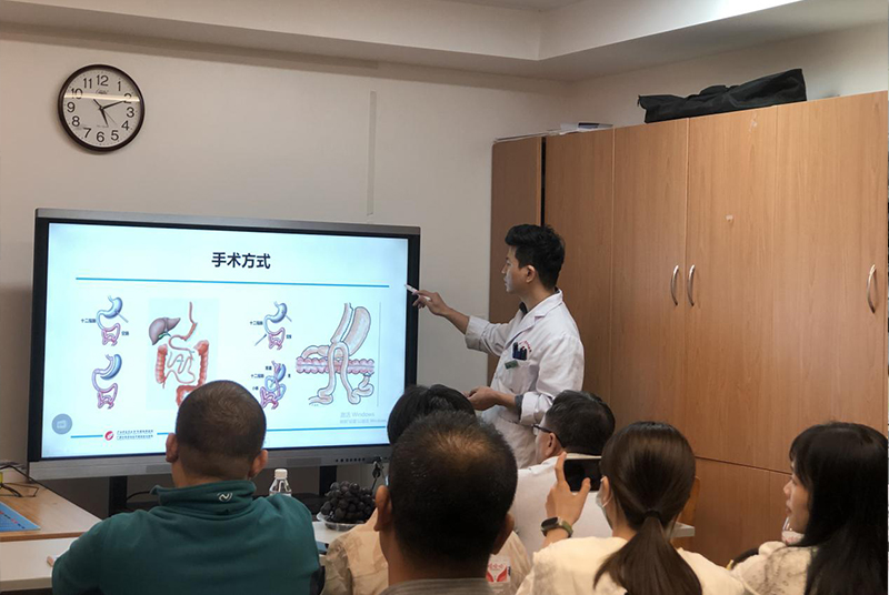 在讲座环节,韦建宝主任以“微创减重代谢手术治疗肥胖症合并代谢综合征”为题进行授课,减重团队的伍世棵主治医师详细讲解了减重代谢手术标准化住院流程,梁日晓护师作为减重的个案管理师,为大家介绍了减重个案管理师在微创减重与代谢手术围术期及术后随访管理的作用。