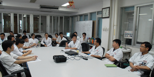 6月23日,中南大学湘雅医院卫生部肝胆肠外科研究中心李年丰教授莅临我院,参加了我科大查房,并上台示范了1台腹腔镜结肠癌根治术。6月24日上午在肝胆外科上台指导了1台肝癌根治术。下午在我科医生办公室进行了题为“肠癌肝转移的治疗”的讲座,并主持对1例正在住院的结肠癌并同时性肝转移的患者进行病例讨论、制定下一步诊治方案。李教授精妙的手术表演、精彩的学术讲座及互动很好的病例讨论组织方式,让我院普外科医护人员开拓了视野、增添了学识,受益匪浅。另外,李年丰教授还与我院普外学科带头人韦建宝主任在科室管理、人才培养、科研工作及学科建设方面进行深入交流和指导。这些指导和交流将极大地促进我院普外学科的进步和发展。