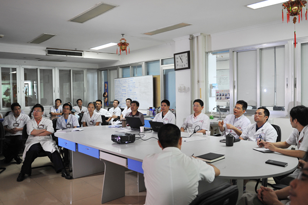 2011年8月27日上午,卫生部肝胆肠外科研究中心刘蔚东教授在广西基地(瑞康医院肝胆、胃肠外科)组织了一次MDT疑难病例讨论会,为一例胃癌并结肠转移患者制定了最佳的诊治方案。参加讨论会的均是相关学科领域的权威专家,包括胃肠外科、肝胆外科、消化内科、内镜中心、肿瘤内科和病理科等。医院院长助理韦思尊到场指导。各位专家针对此病例阐述各自的见解,经过综合、优化制定出最佳的诊治方案―建议先行手术切除胃及结肠肿瘤,术后再行化疗及中医抗肿瘤治疗。8月30日已行手术,术后患者恢复较好。高水平的MDT专业团队协作是为患者取得最佳疗效的保障。