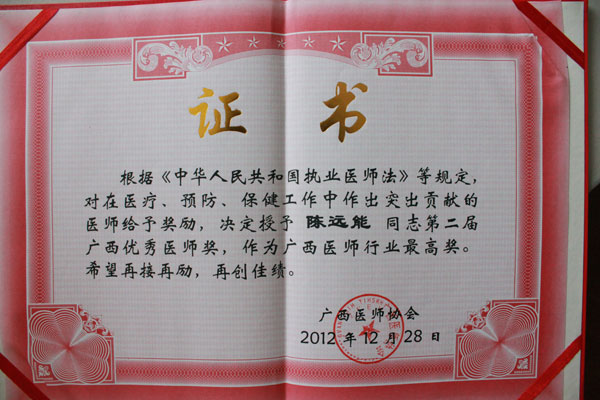 日前,从广西实施“中国医师协会关爱医师健康活动”启动大会上传来好消息。我院消化内科主任陈远能教授荣获广西优秀医师奖。
