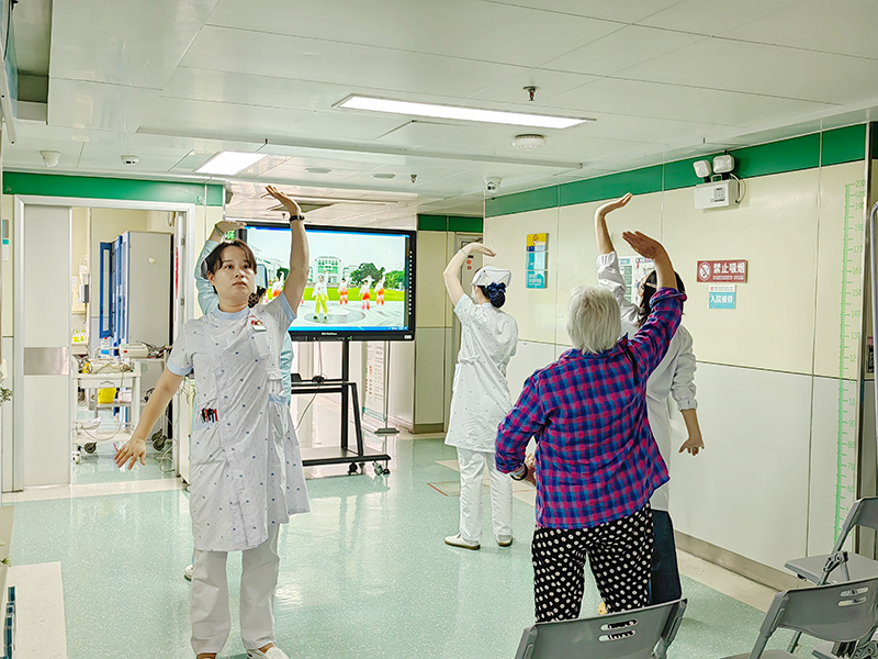 心血管内科二区吴艳林护士长带领病友们练习八段锦养生操