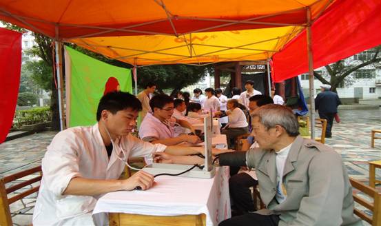 本次义诊活动由瑞康医院团委副书记汪国翔带队,瑞康医院心血管内科副主任医师黄修解担任专家,瑞康临床医学院团总支学生会15名同学以及08骨伤班10名党员参加了义诊活动。