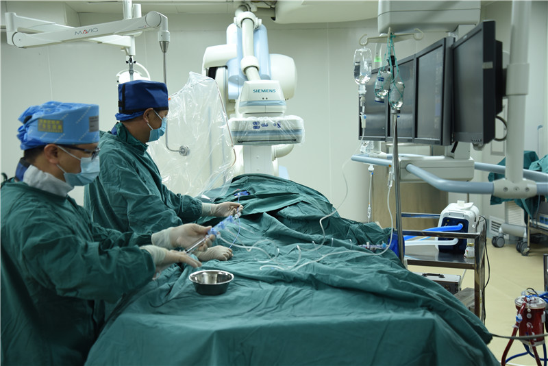 陈建军主任及庞伦祥副主任医师进行冠脉介入手术治疗