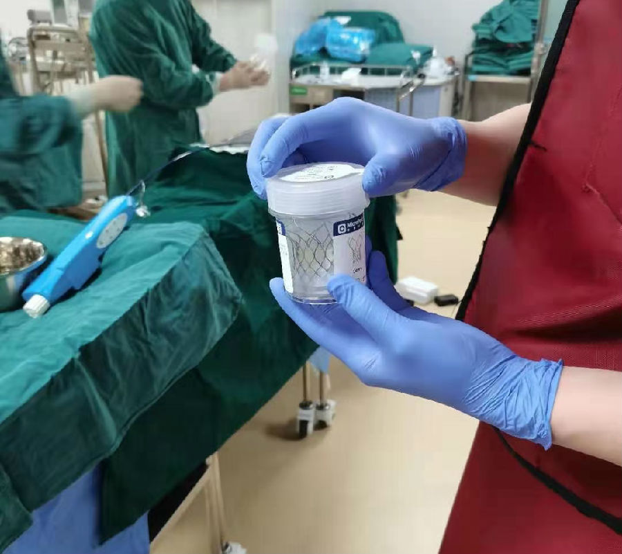 介入人员术前的相关器材准备,图中为人工主动脉瓣膜
