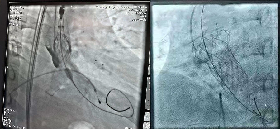 术中精准定位及释放,经主动脉造影显示贴位良好,无明显反流