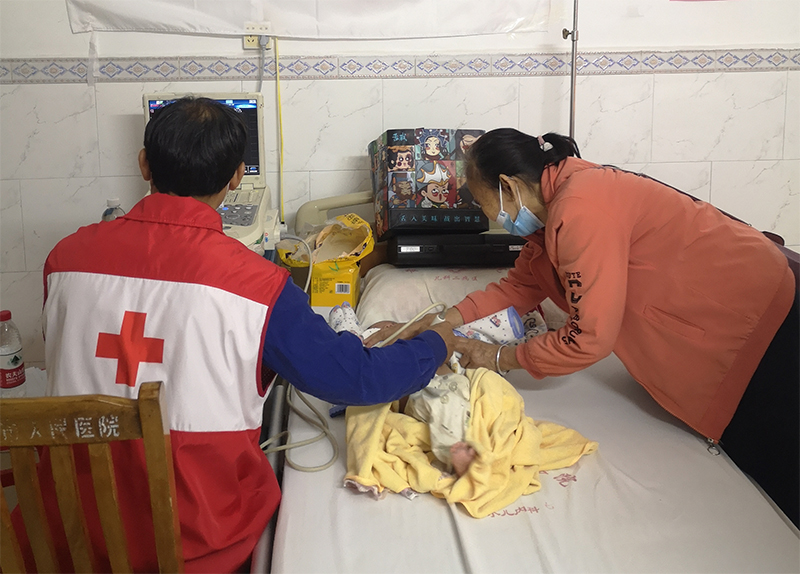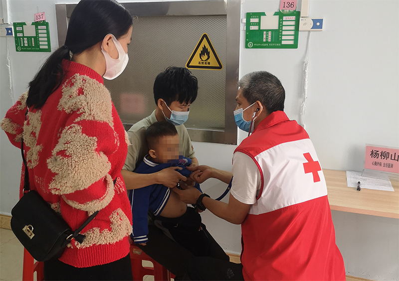 活动中,胸心血管外科杨柳山主任带领先心病筛查义诊团队对疑似先心病/心脏病、曾接受过心脏手术的儿童及成人进行免费筛查(复查),耐心解答患者及家属的疑惑,并根据听诊、彩超检查的结果,给患者及患儿家属提供专业的治疗指导。与此同时,团队成员以及红十字志愿者还详细告知申请救助的方法及流程,宣传先天性心脏病的危害以及“早筛查、早诊断、早治疗”的重要性,进一步提高了当地群众对先天性心脏病筛查、诊断、治疗的知晓度和接受度。