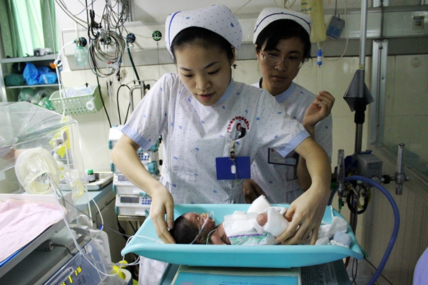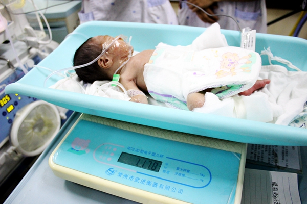 刚来到医院医务人员就忙不迭地把小圆圆转移到了温箱里