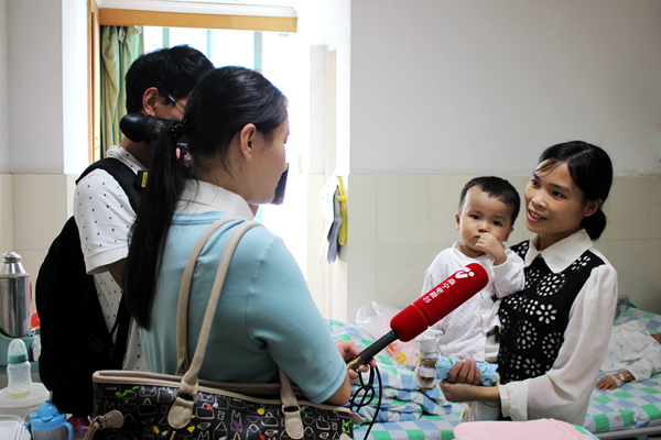 10月30日下午,“帮得娃娃”李哲民在妈妈的怀里一边“咯咯咯”地笑着,转着他那滴溜溜的黑眼珠,一边玩着手里的玩具车。再过几分钟,等爸爸办好出院手续,他就可以和爸爸妈妈回家了。南宁电视台《帮得行动》的记者也赶来采访小哲民的恢复情况。